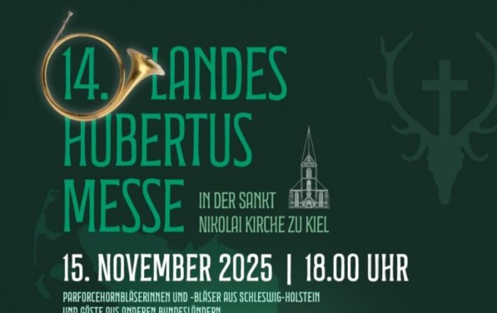 Landeshubertusmesse 2025 kehrt nach Kiel zurück Die traditionsreiche Landeshubertusmesse des Landesjagdverbandes Schleswig-Holstein findet in diesem Jahr wieder in Kiel statt: Am Samstag, 15. November 2025 um 18:00 Uhr l [ ... ]